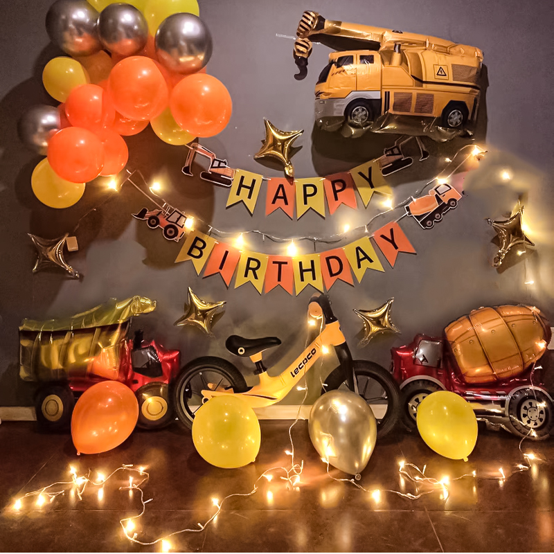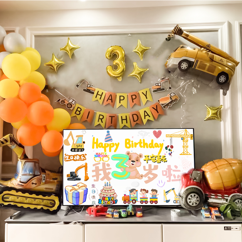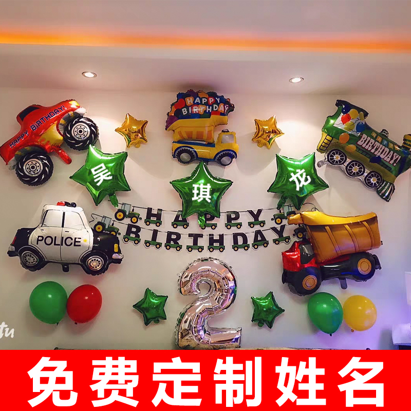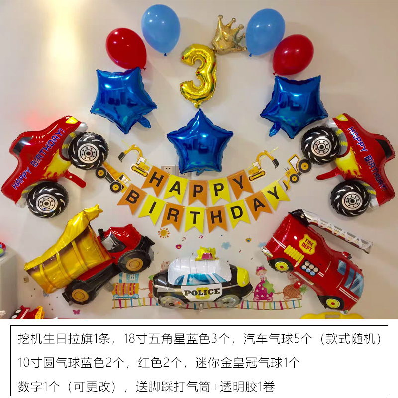 New Car Digger Lager Flag Themed Children Birthday Decorated Balloon Placement Baby Boy Birthday Party