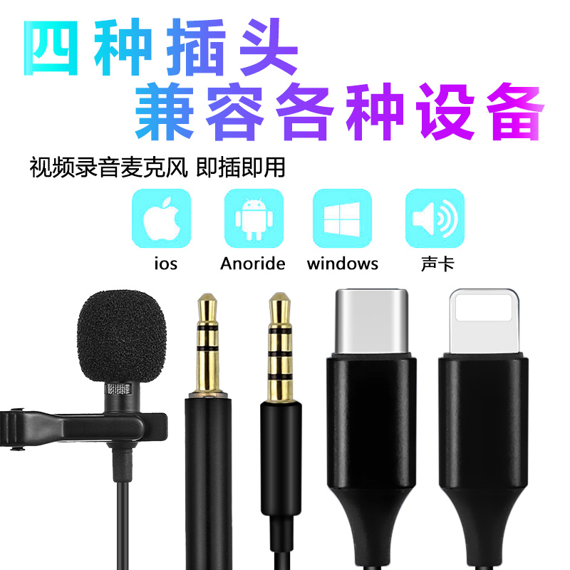 Lavalier microphone mobile phone radio microphone recording vlog video Apple monocular interview live broadcast eating and broadcasting voice-activated microphone