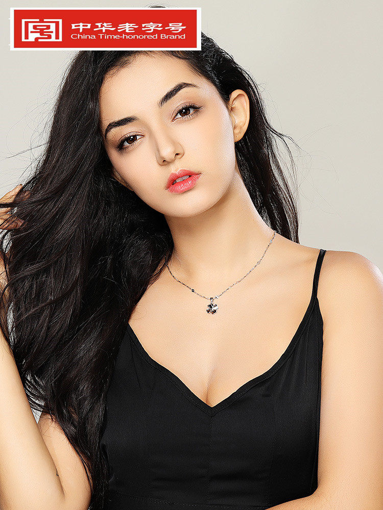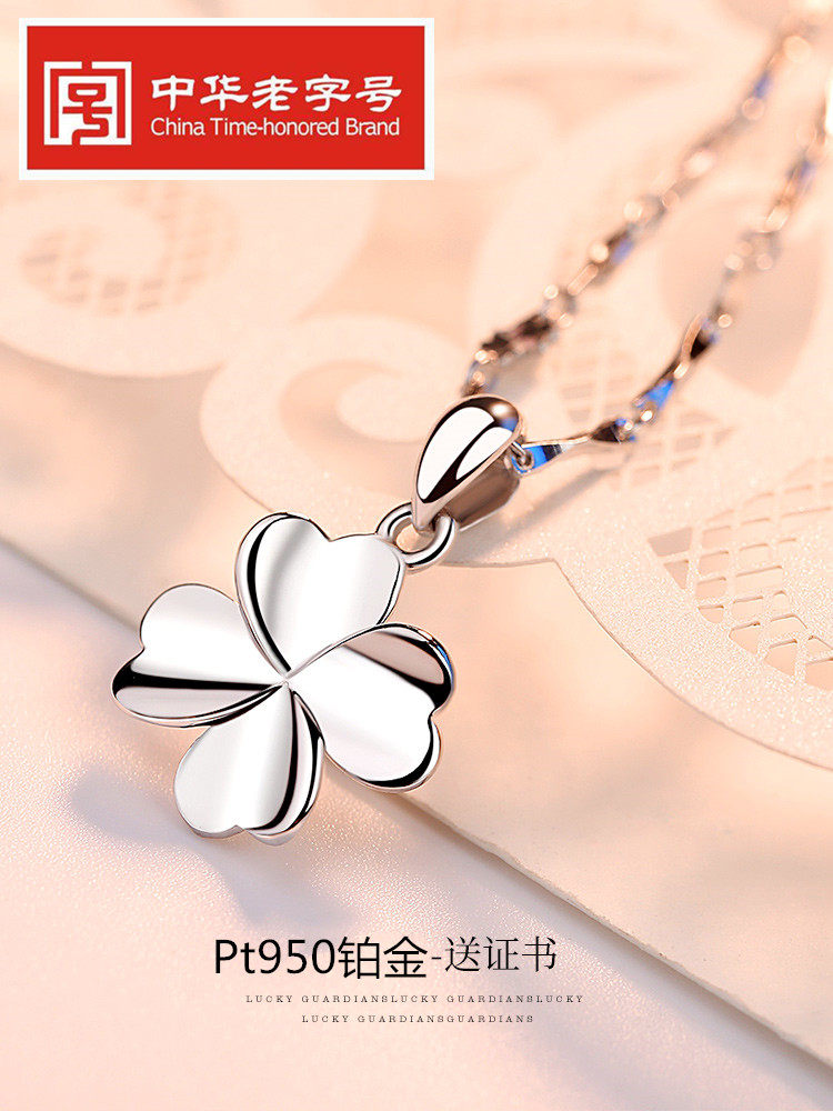 Zhou Da Liufu pt950 platinum necklace female platinum clavicle chain 18k gold four-leaf clover pendant girlfriend birthday gift