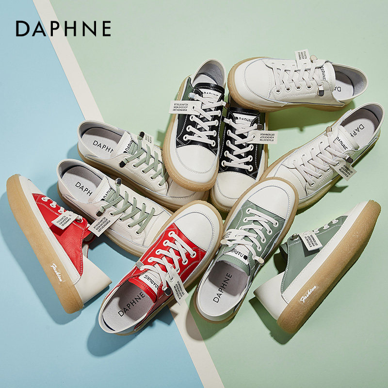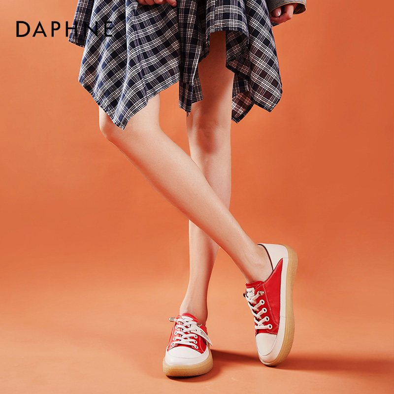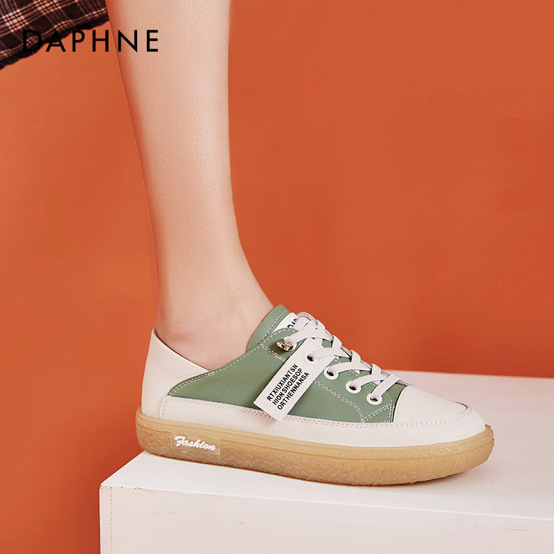 Daphne small white shoes female dermis 100 hitch version ins Chains Chains 2020 new round head lacing flat bottom plate shoes female