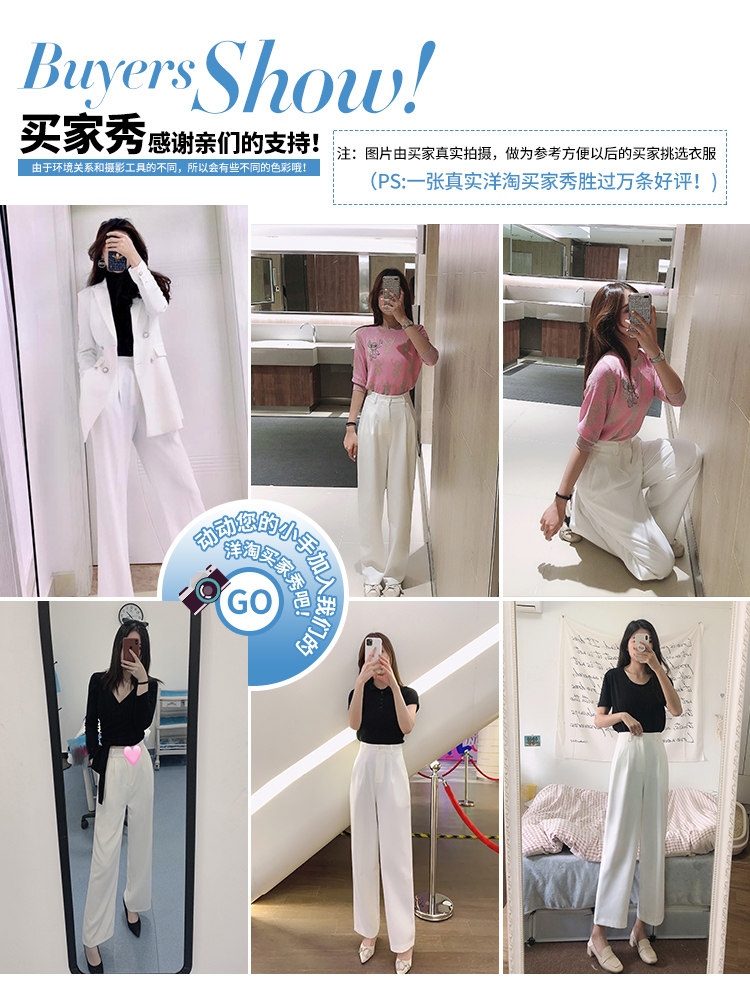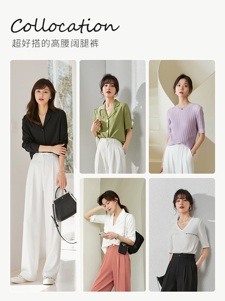 White wide pants women high waist summer thin section 2022 new small drape loose design sense suit pants