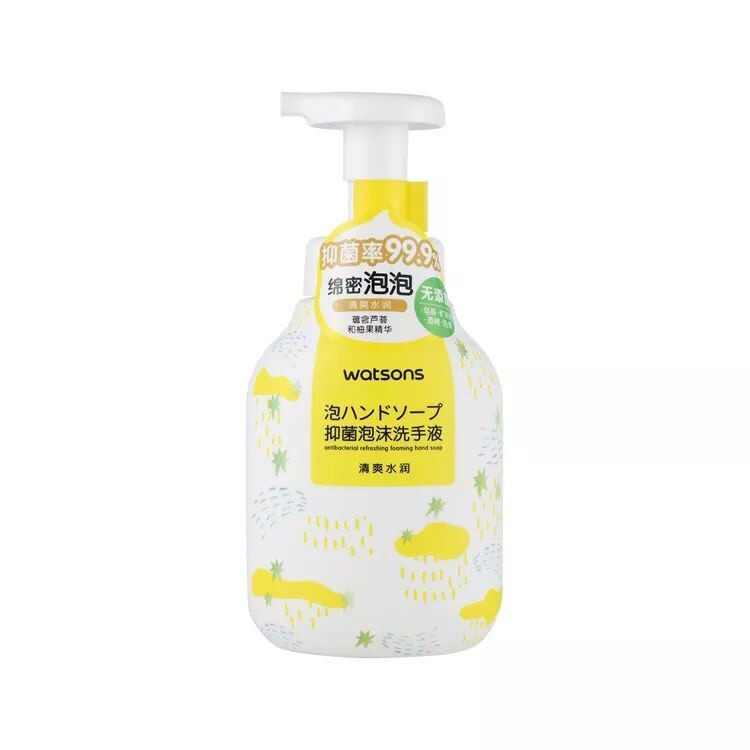 Watsons antibacterial foam hand sanitizer 300ml pure moisturizing pink bottle refreshing water moisturizing yellow