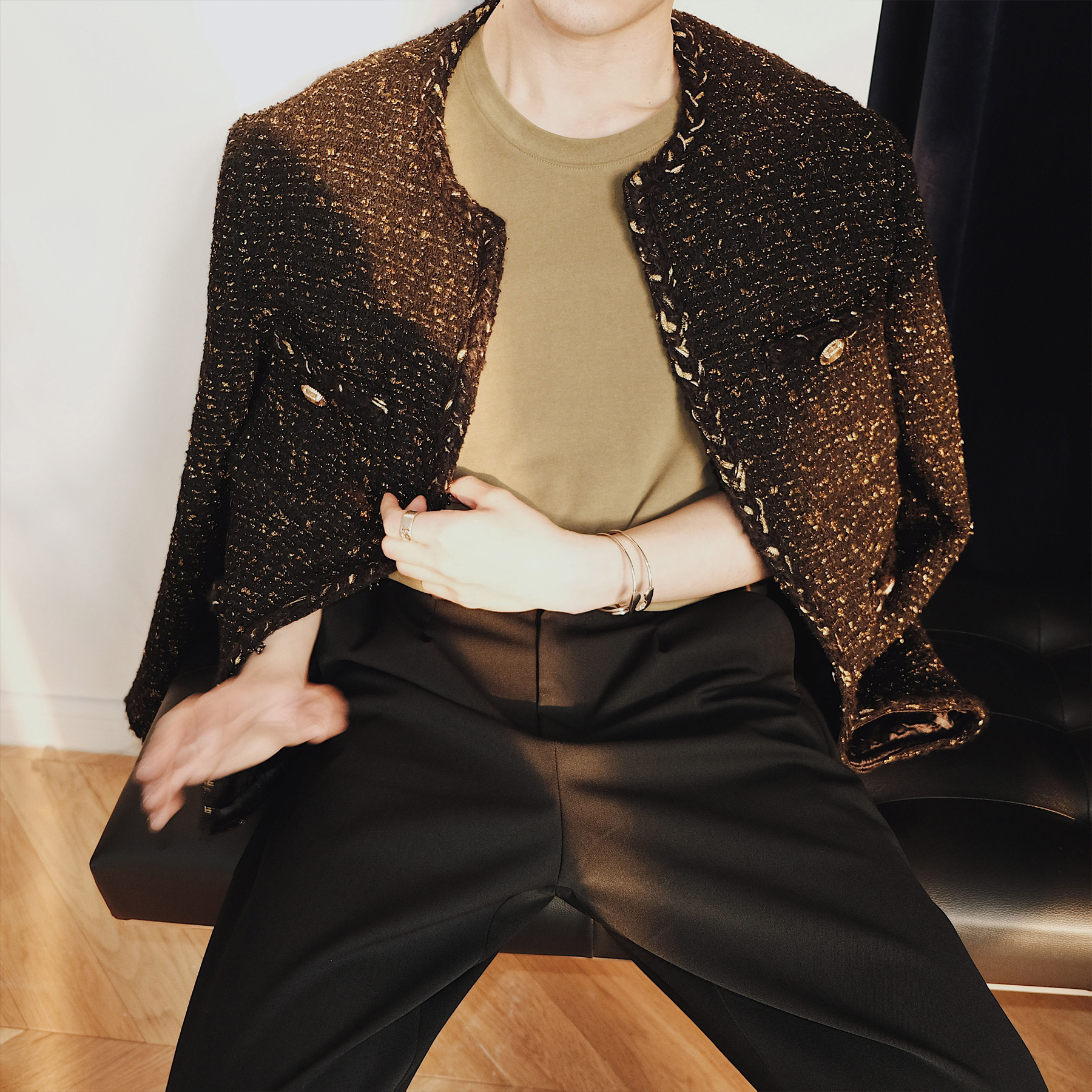 24KHOMME private custom starry gold silk jacket small fragrant style jacket jacket jacket male temperament short