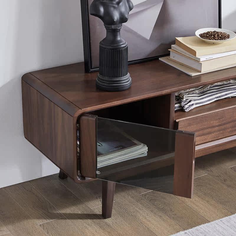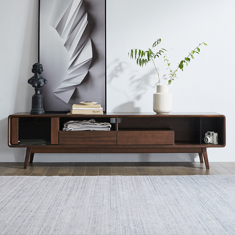 Original element solid wood TV cabinet living room furniture Nordic modern light luxury black walnut TV cabinet G5081