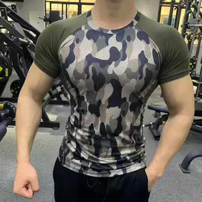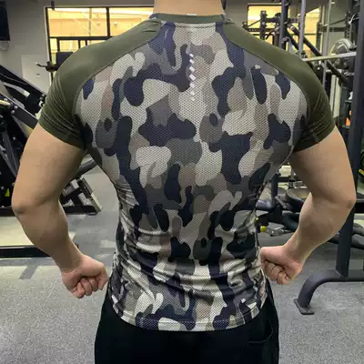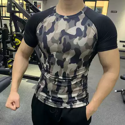 2020 summer new fitness clothes men's camouflage tights high elastic breathable sweat-absorbing short-sleeved running training quick-drying clothes