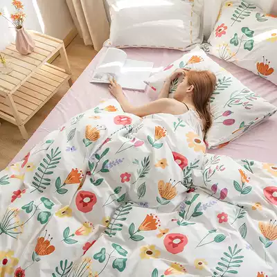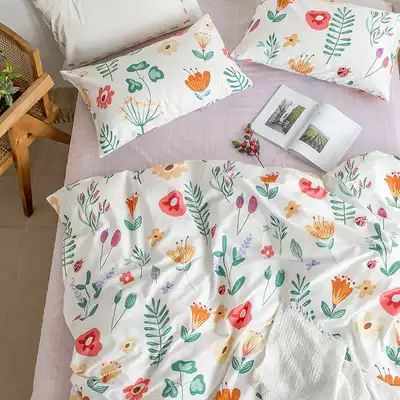 Spring and summer new cotton four-piece twill cotton single quilt cover sheet Nordic hipster pastoral bedding