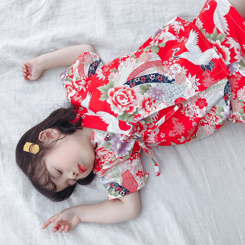 Japanese children's pajamas Summer cotton cotton short sleeve thin suit Baby air conditioning clothes Girls summer home clothes Kimono