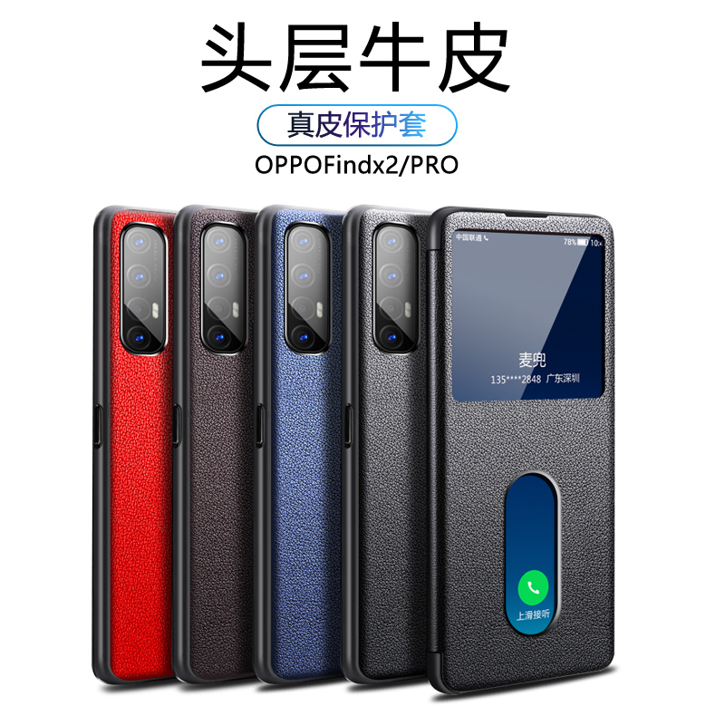 opporeno3pro mobile phone protection shell genuine leather reno3 protective sleeve clamshell type leather sleeve OPPOreno3por full bag anti-fall head layer of cow leather 5g silicone shell ultra