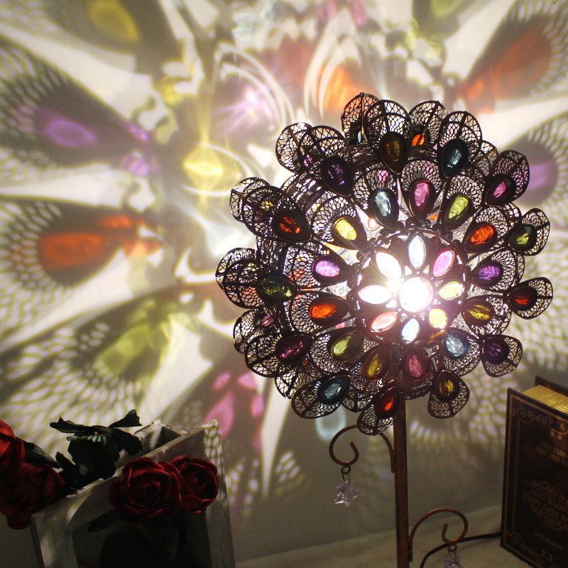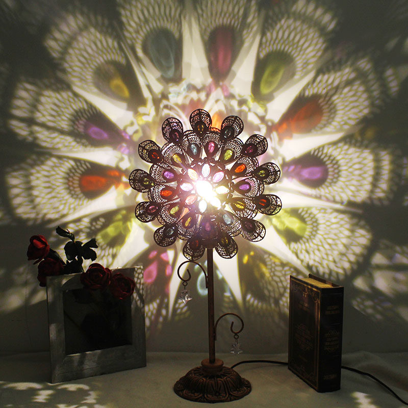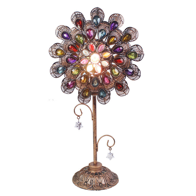 Creative flowers handmade peacock beaded wrought iron table lamp Southeast Asian restaurant homestay girl warm net red bedside lamp