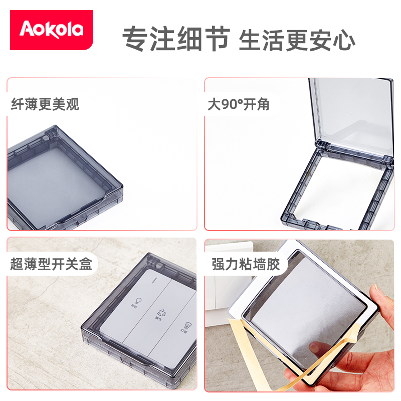 Okolang Bathroom Switch Waterproof Hood Ultra Slim Waterproof Case 86 Type Adhesive Splash-Proof Box Bathroom Switch Waterproof Cover