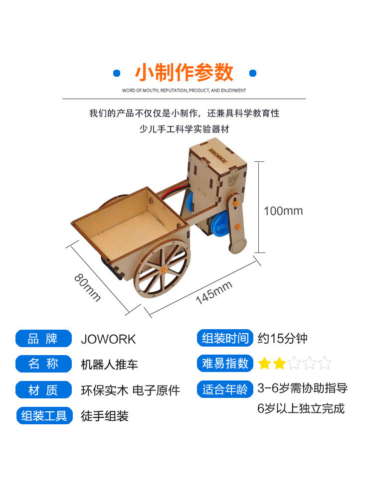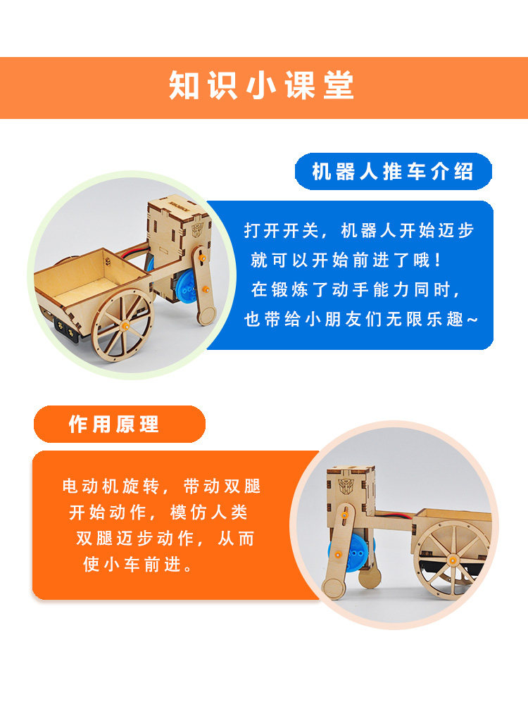 JOWORK CHILDREN ELEMENTARY SCHOOL CHILDREN'S THREE FOURTH GRADE HANDMADE DIY MAKE ASSEMBLED MATERIAL BAG WALKING ROBOT CART