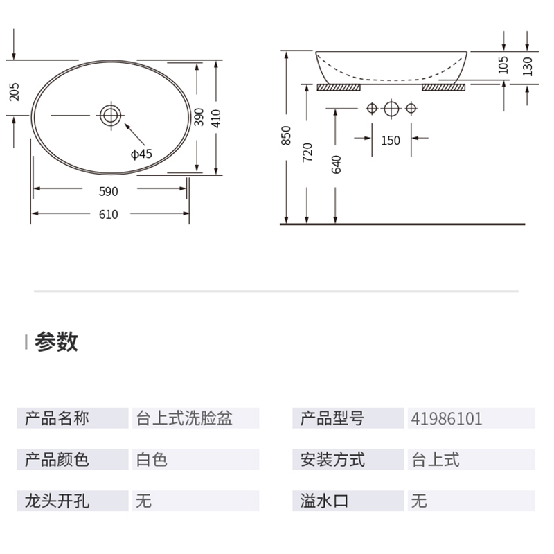 German original clothing imported Vippel 41986101 Antis bathroom Home Handwashing table Upper basin bowls white