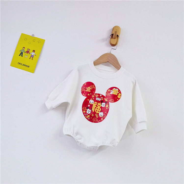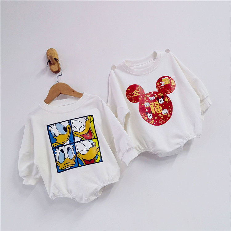 2022 baby autumn cotton Korean version bag fart romper treasure Mickey mouse sweater triangle romper children's jumpsuit