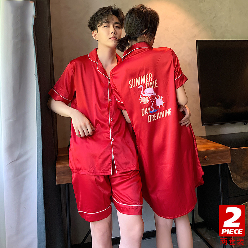 Short-sleeved Flamingo Pink Female Black male Short-sleeved Flamingo Pink Female Royal blue Male Short-sleeved Flamingo Baolan Female Royal blue Male Short-sleeved Flamingo Green Female Black Male Short-sleeved Flamingo Big red Female
