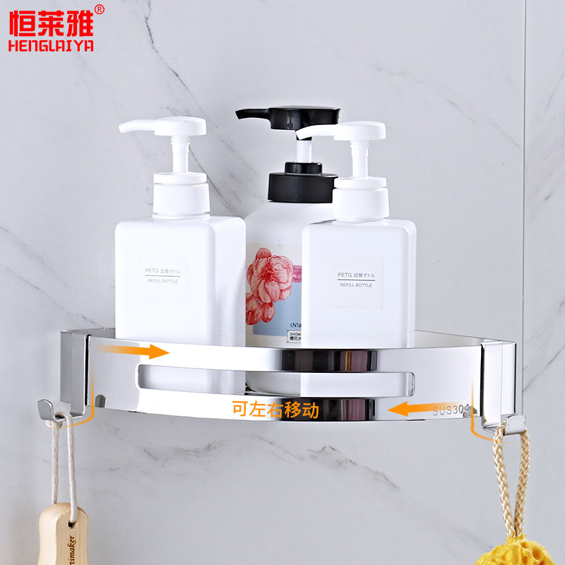 Thickened 304 stainless steel powder room rack wall-mounted punch-free bathroom corner triangle blue toilet storage shelf