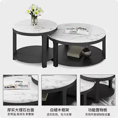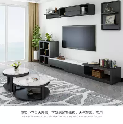 Marble round coffee table modern minimalist small apartment home Nordic solid wood size round tea table TV cabinet combination