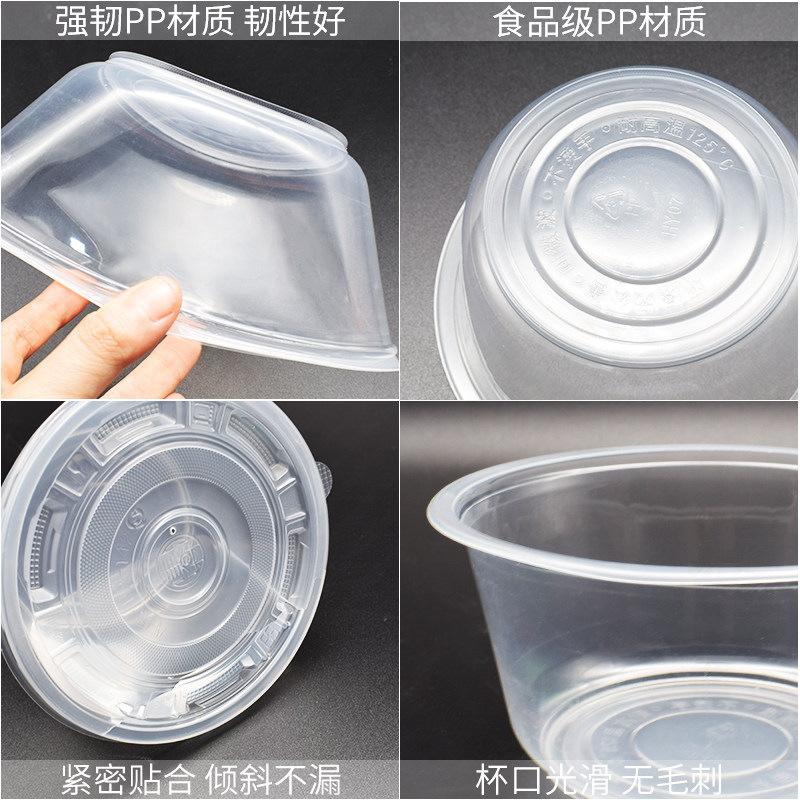 Disposable plastic suction round bowl 360850 soup bowl 500 environmentally friendly packed lunch box 700 round ice powder plastic bowl 999