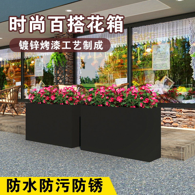 Outdoor wrought iron flower box fence outdoor swing street stainless steel flower trough rectangular flower pot flower bed planting box customization