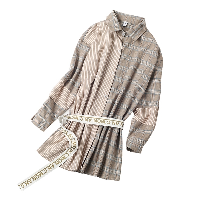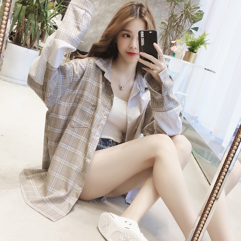 Shirt female design sense niche spring new Korean version loose Joker fashion long version Plaid retro Hong Kong flavor coat