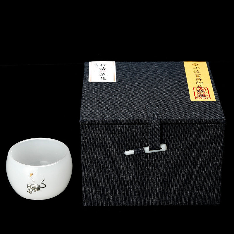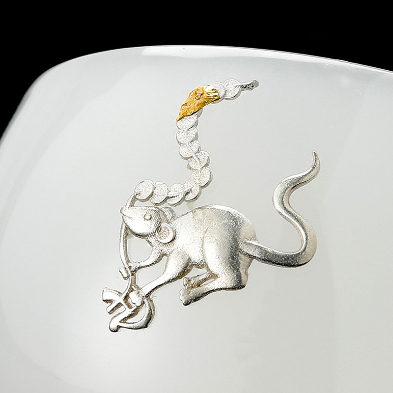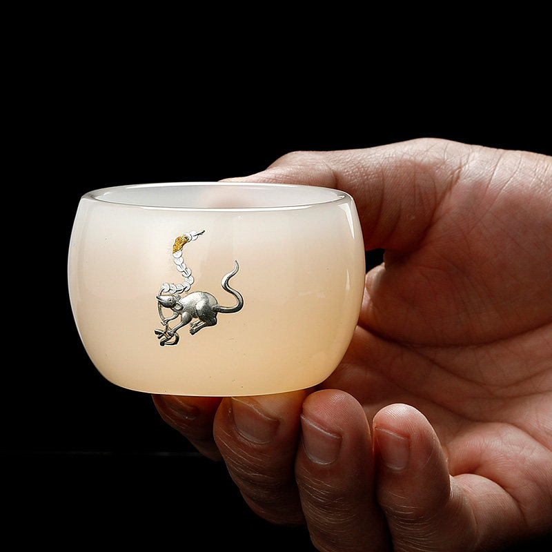 Jingdezhen Kung Fu teacup inlaid with silver handmade zodiac glass master cup high-grade gift box collection