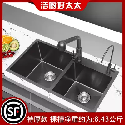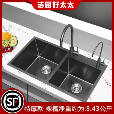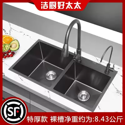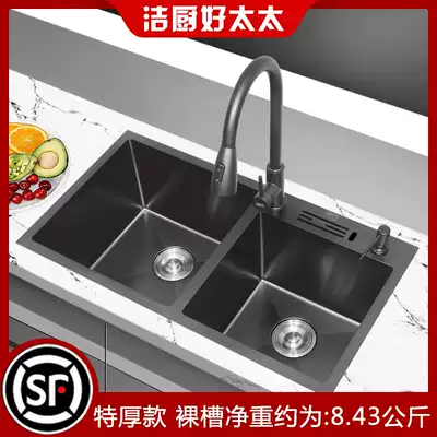 German Nano Kitchen Sink Double Sink Handmade Thickened 304 Stainless Steel Black Household Vegetable Wash Pool