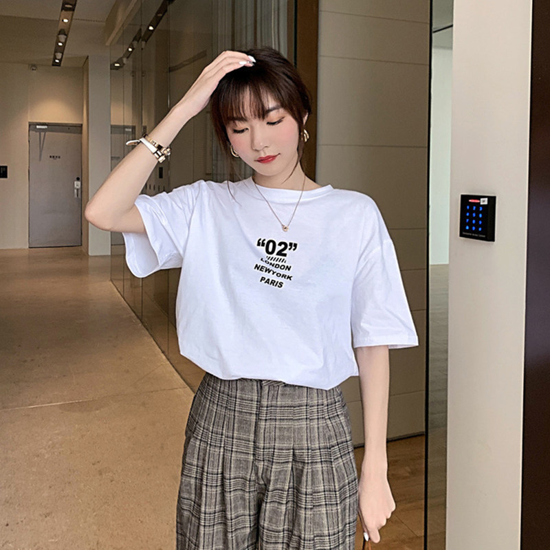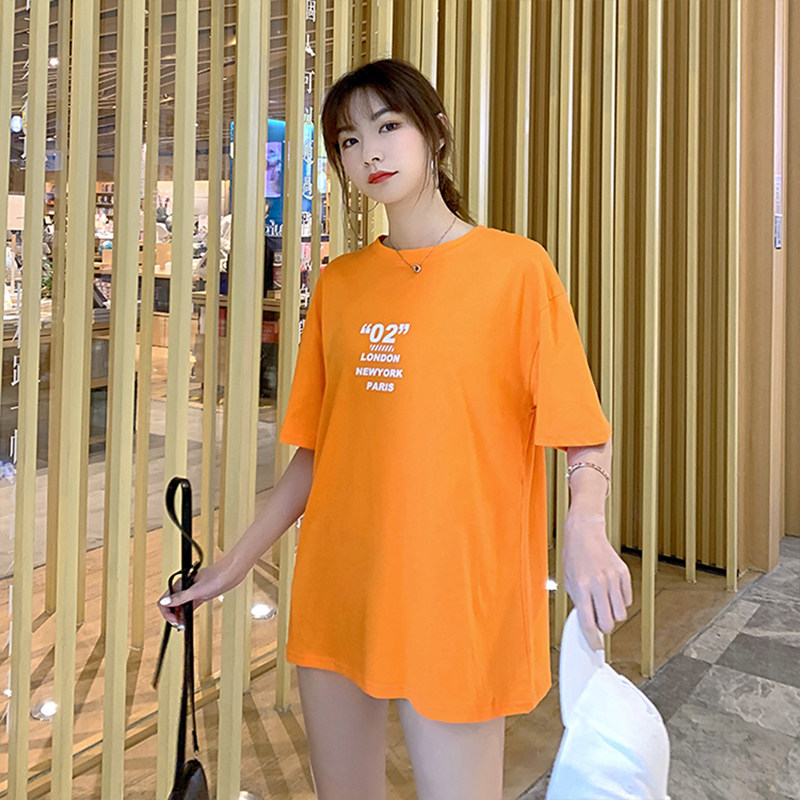 Large size Trendy Display Slim Summer Short Sleeve T-shirt Women Ins 100 Loose Medium Long version of the small crowdblouse net red hyperfire
