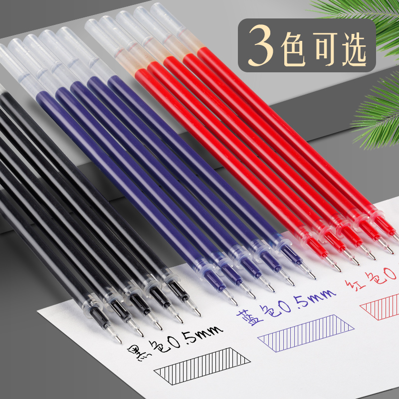 100 Right-hand Refill 0 5mm Black Medium Pen Core Students With 0 38 Stand-in Core Subwarhead Exam Black Refill Speed Dry Black Carbon Full Needle Water Pen Signature Pen Blue Red Bucket