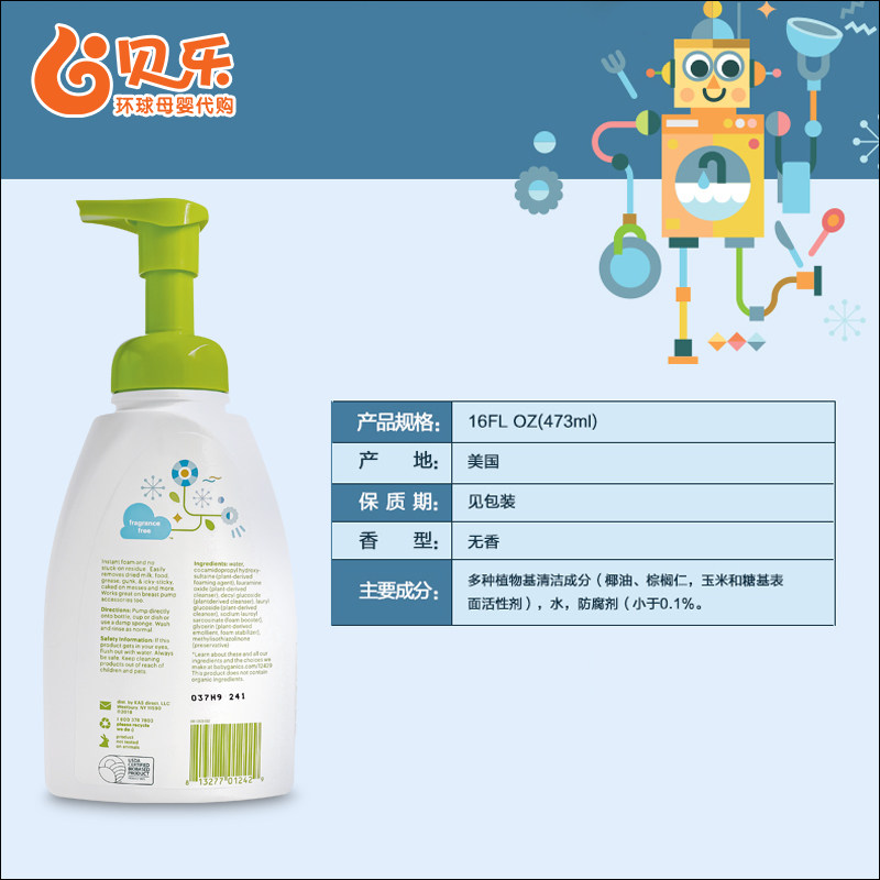 American Babyganics Ganik Milk Bottle Cleaning Liquid Pacifier Fruit And Vegetable Baby Baby Cutlery Lotion 473ml
