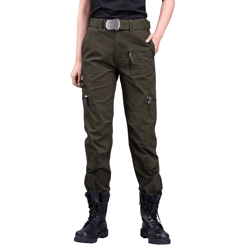 Spring and autumn Outdoor Sports Women's Color Pants Pure Cotton Multipocket Army Green Workwear Pants Casual Display Slim Fit Women's Army Pants