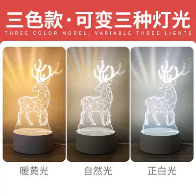 Sika deer 3d night light creative bedroom sleep eye protection bedside lamp LED energy saving lamp girl heart dormitory usb