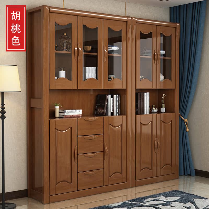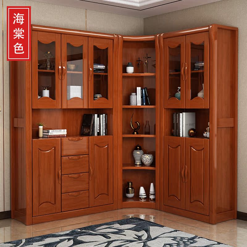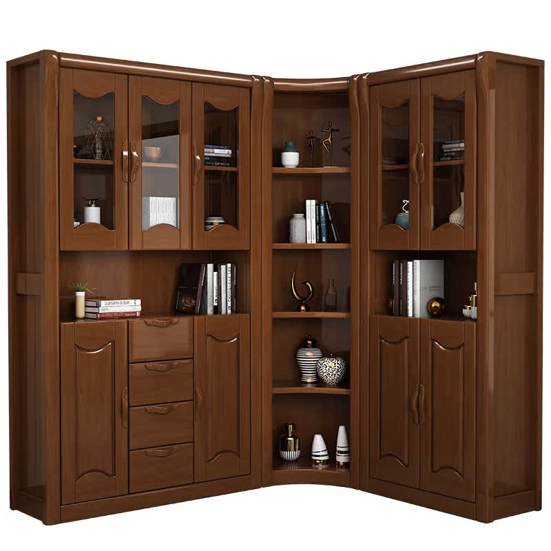 Solid wood bookcase with corner bookcase Storage cabinet Combination with glass door bookcase custom cabinet Modern Chinese bookcase
