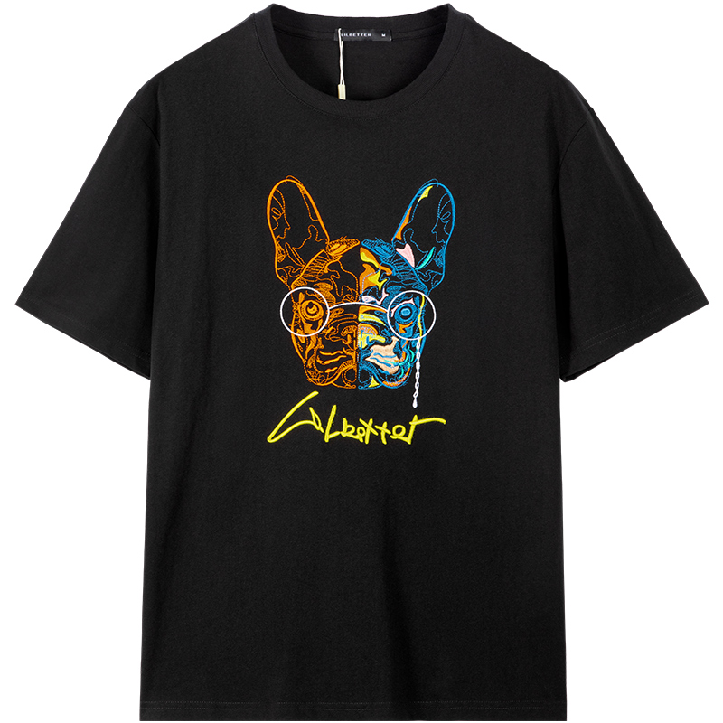 Lilbeter Short Sleeve T-Shirt Male Lover Loaded With Summer Tide Card Embroidery T-shirt Loose National Tide Half Sleeve Men's Blouse LB