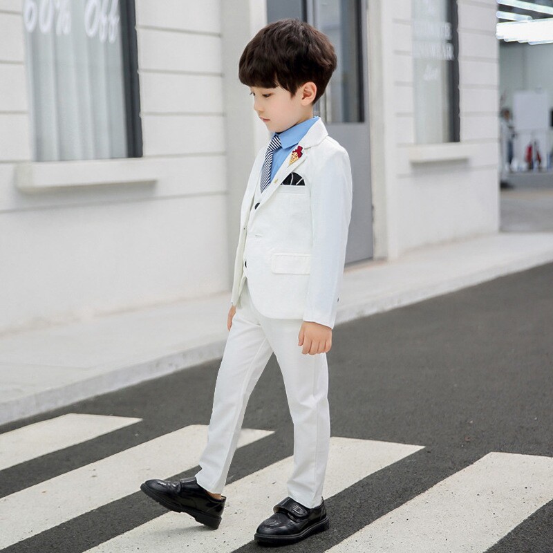 2022 spring new boy spring clothes small suit flower girl fashion pure white suit six-piece piano host dress