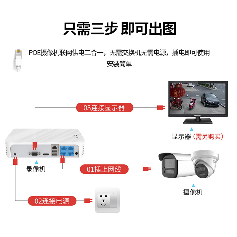 Hikvision monitor POE set equipment mobile phone remote outdoor waterproof home 4 million full color camera