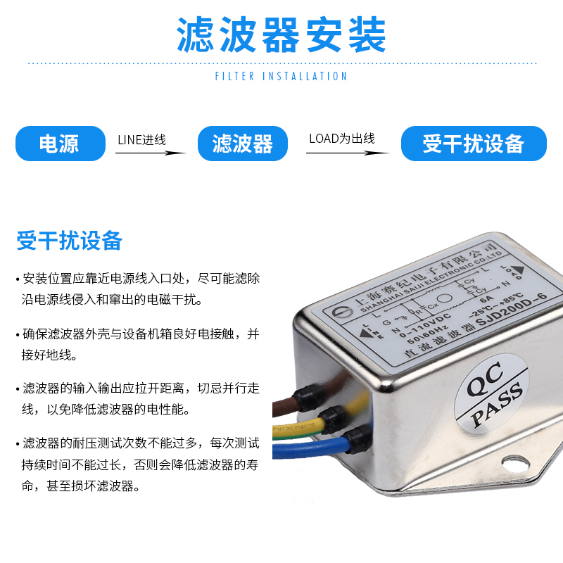 Saiji EMI power filter DC 12V anti-interference 220v AC audio inverter servo three-phase 380v
