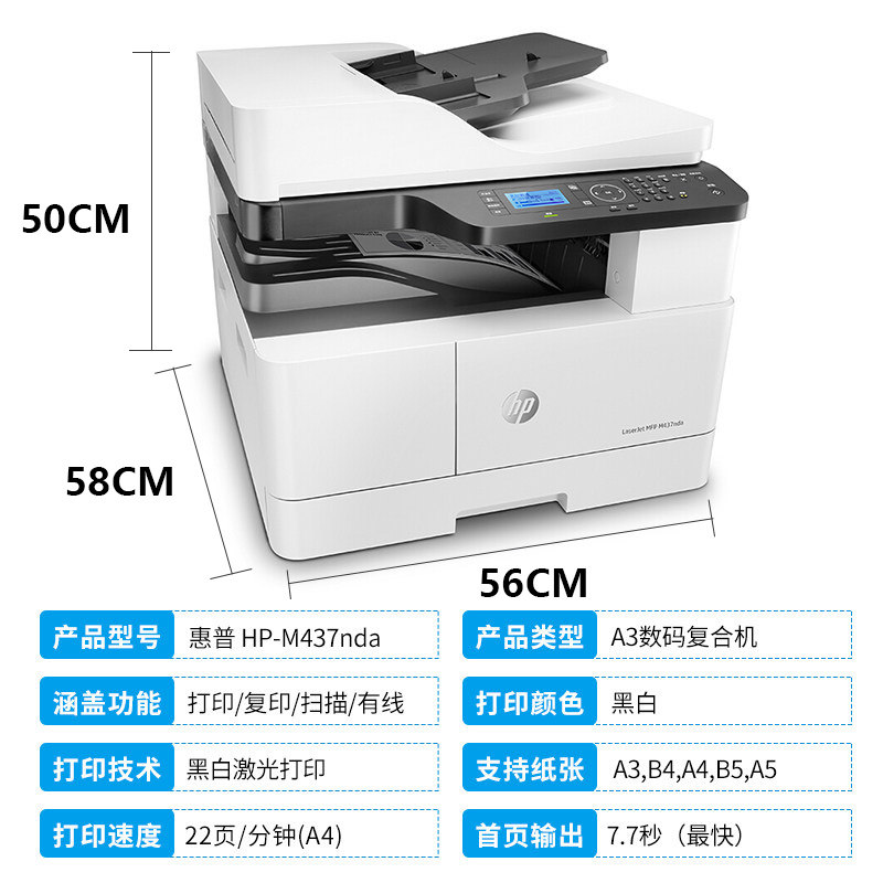 hp m437n 437dn 437nda monochrome laser multifunction A3 all-in-one printer continuous copy scanning fully automatic double-sided wired network business office hp m439nda