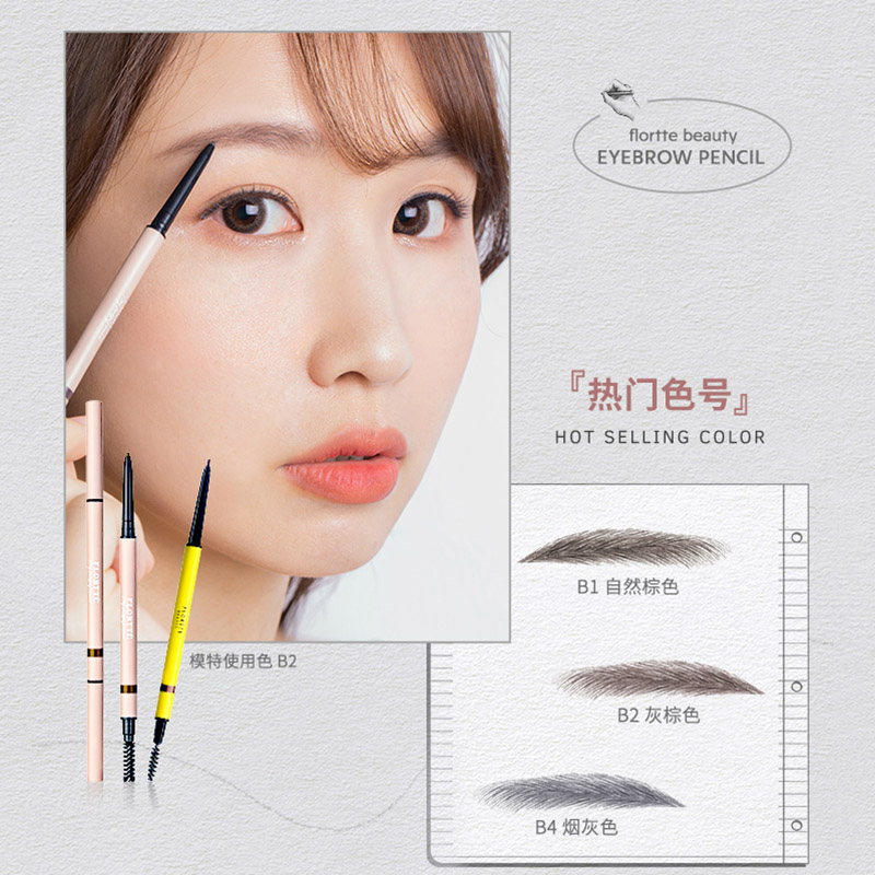 FLORTTE Floral Double Head Extremely Thin Eyebrow Pencil Waterproof Sweatproof No Peeling No Peeling Easy To Color Not Easy to Blend