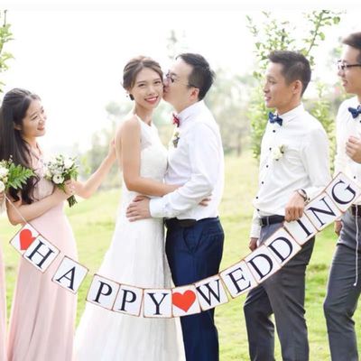 Little Red Book Simple Wedding Room with Letter Stretch Background Wall Decorated Just Married Taking Prop