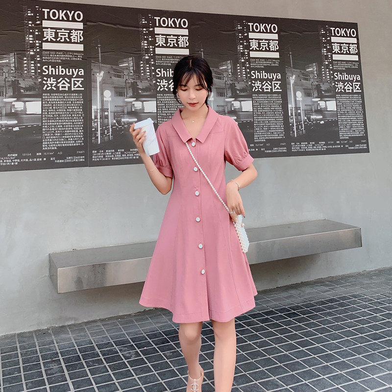 Blue language Big code Female dress Fat younger sister mm2023 Summer new French style elegant Liandress Dress Temperament Slim medium Long dress