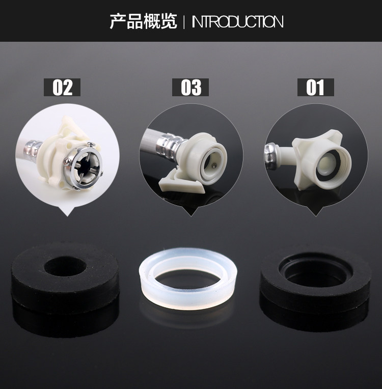 01 Notch washers (3 sets) 02 small hole washers (3 sets) 03 slot silicone ring (3 sets) 01 02 03 rubber ring three-piece set