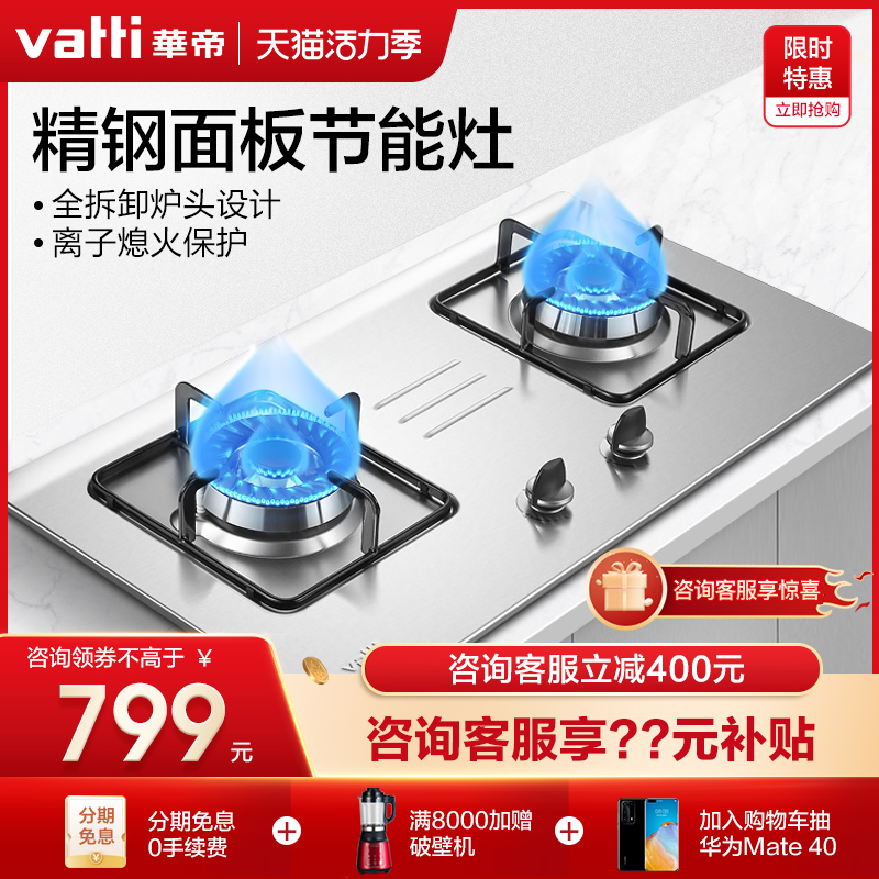 Huadi gas stove i10033A embedded desktop gas stove Gas liquefied gas household stainless steel double-port gas stove