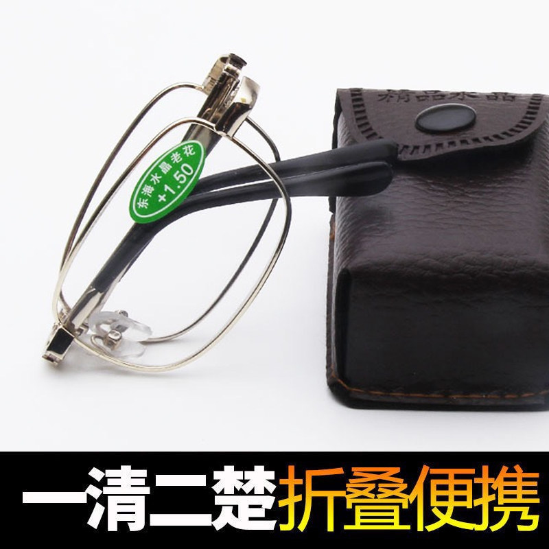 Reading glasses HD crystal glass lens reading glasses men's folding portable anti-fatigue elderly glasses women