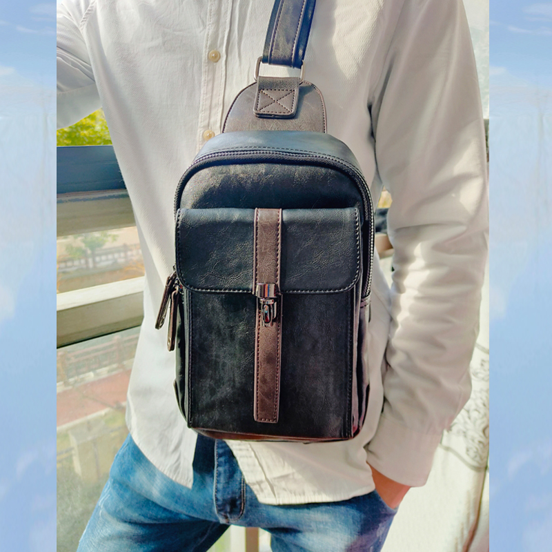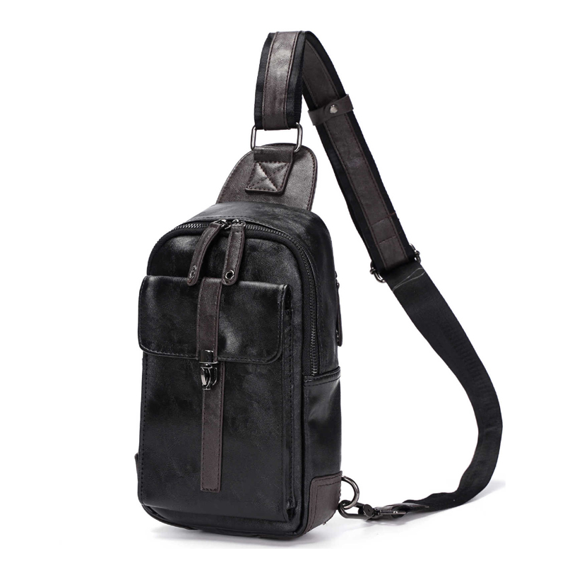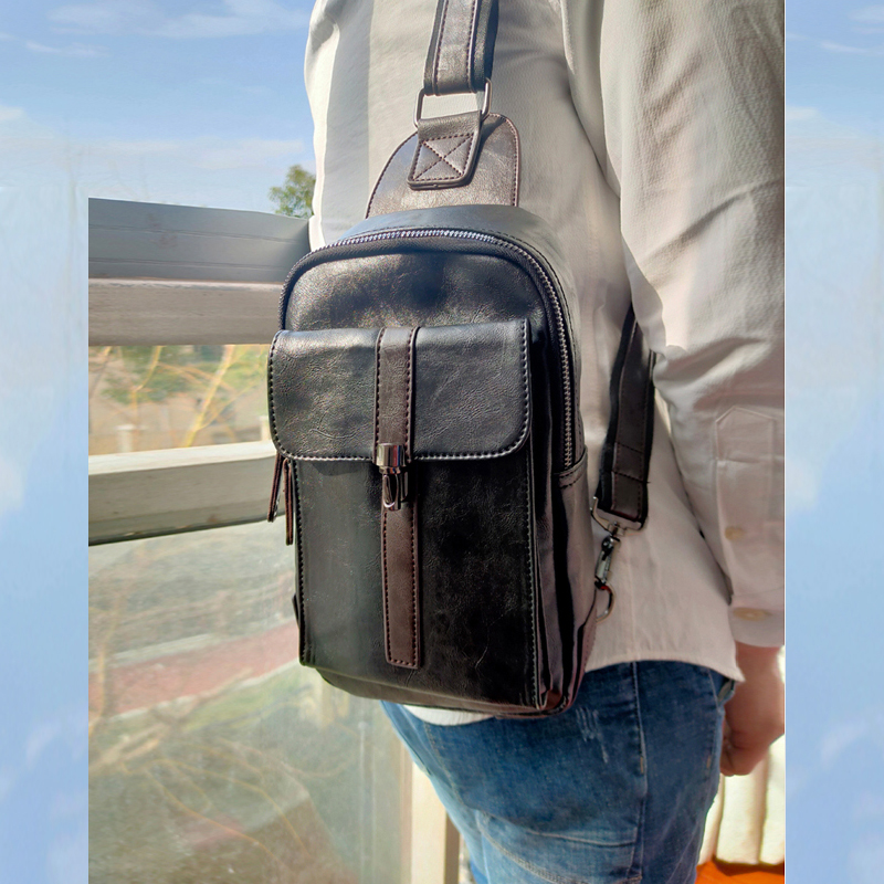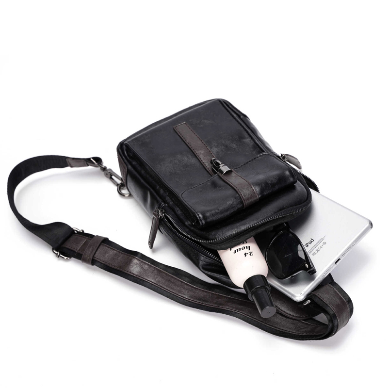 Svison's Star New Men's Chest Bag Soft Leather Slanted Satchel single shoulder bag Leisure Chains Chest Front Little Scapegoat Korean version