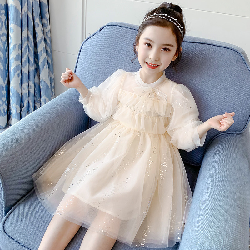 Girl Ocean Dress 2022 New Spring Dress Foreign Pie Fluffy Dresses Summer Trendy Dress Children Suit Girl Princess Dress