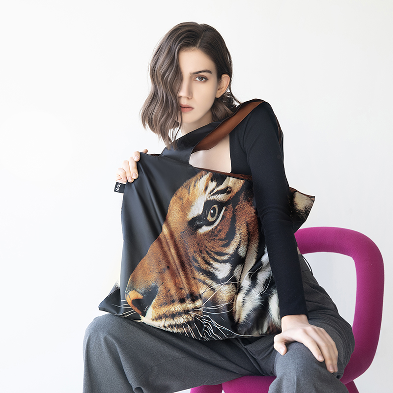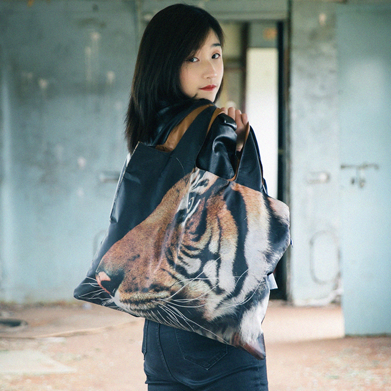 Loqi protect the earth environment-friendly bag lightweight folding shopping bag stylish one-shoulder hipster backpack Malayan tiger