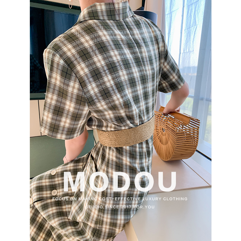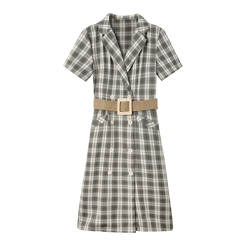 Belt Ocean Clothing Collection Waist Summer 2020 Ox Oil Fruit Green Suit Plaid Slim Dress Retro Skirt Temperament Dating Skirt