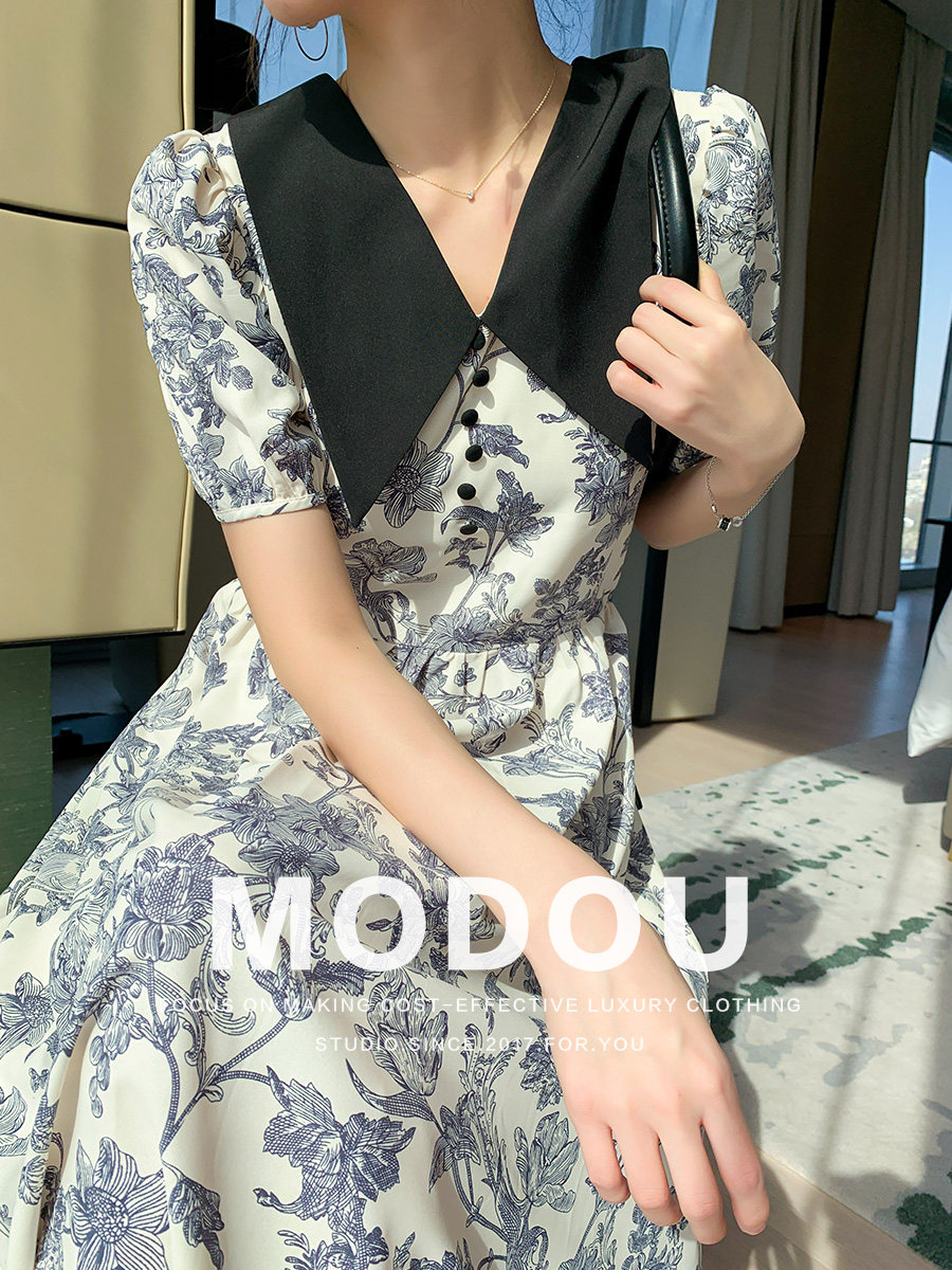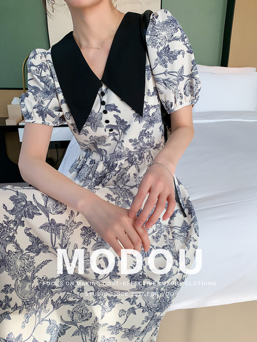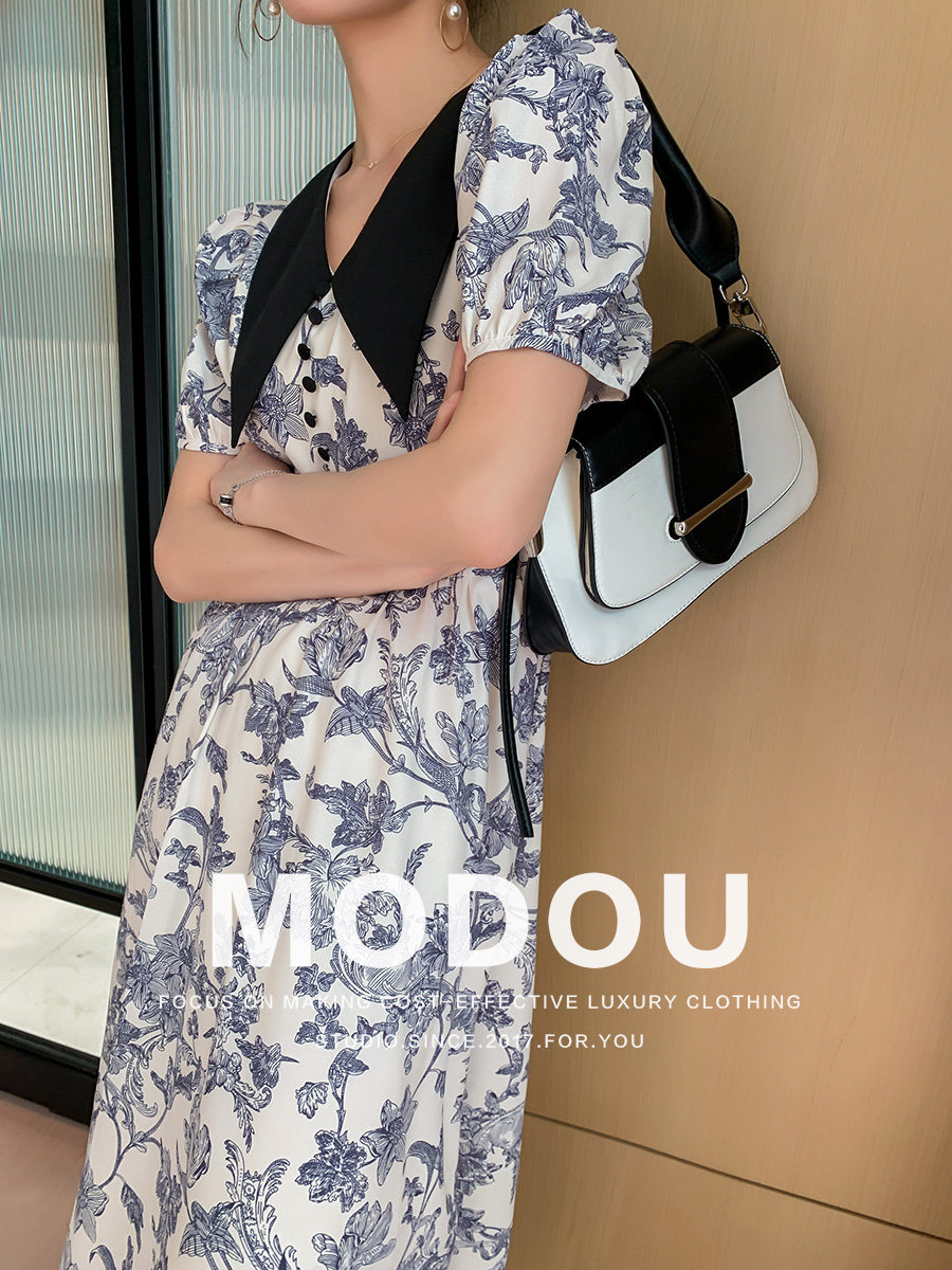 MODOUSTUIDO Exclusive Custom French Chiffon Floral Dress Doll Collar Light Cooked Slim First Love Retro