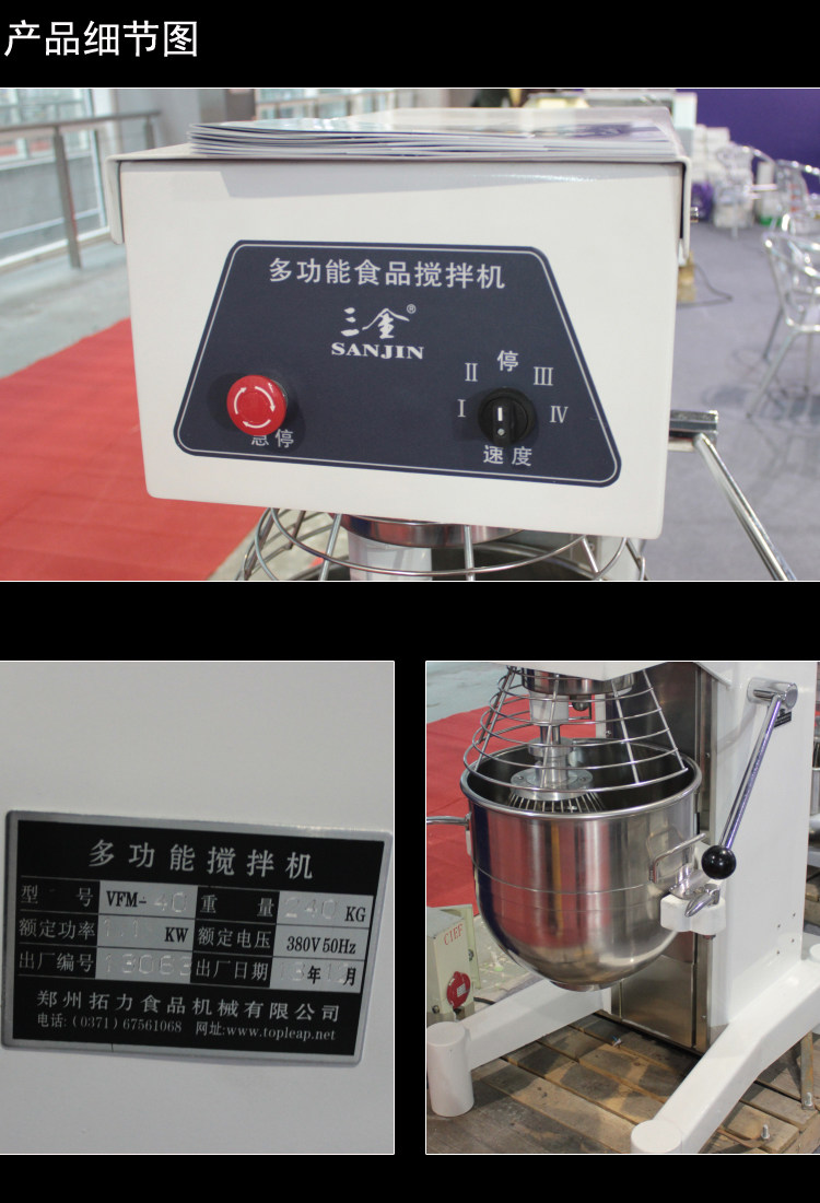 Three Gold Beats Egg Machine VFM-40 Multifunction Mixer Chef Machine 40L Commercial Baking and Noodle Machine