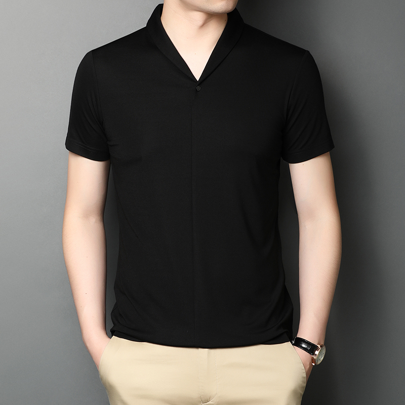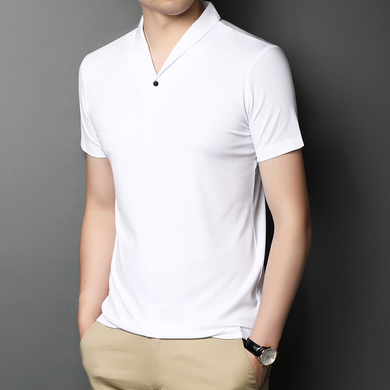 Short sleeved men's T shirt summer personality fashion ice silk men V collar solid color half sleeve shirt bottom shirt fashion men's clothing