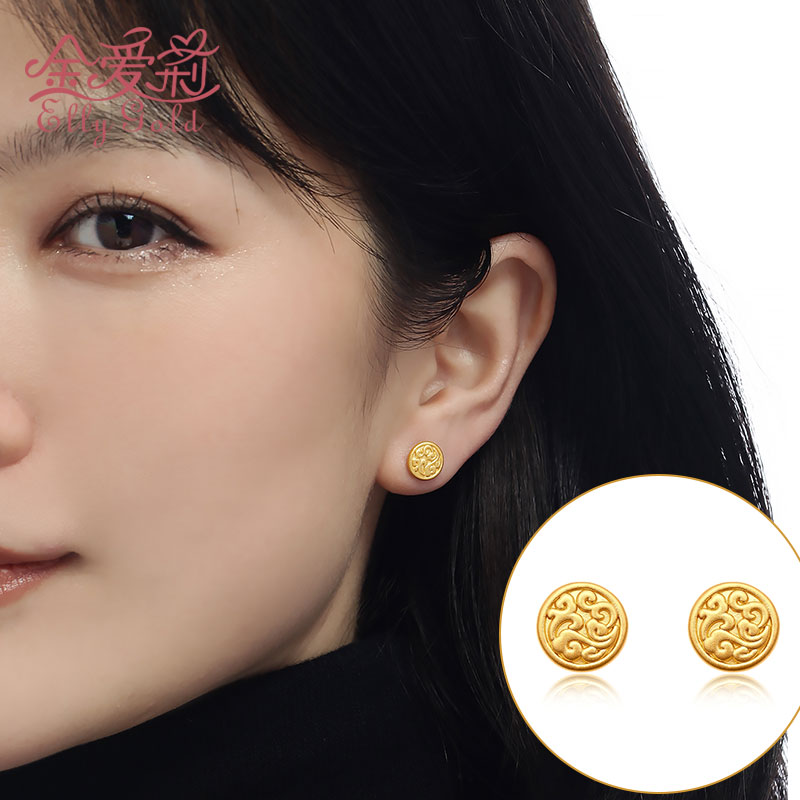 New gold auspicious clouds earrings women 999 pure gold fashion ancient earrings pure gold Valentine's Day gift to girlfriend